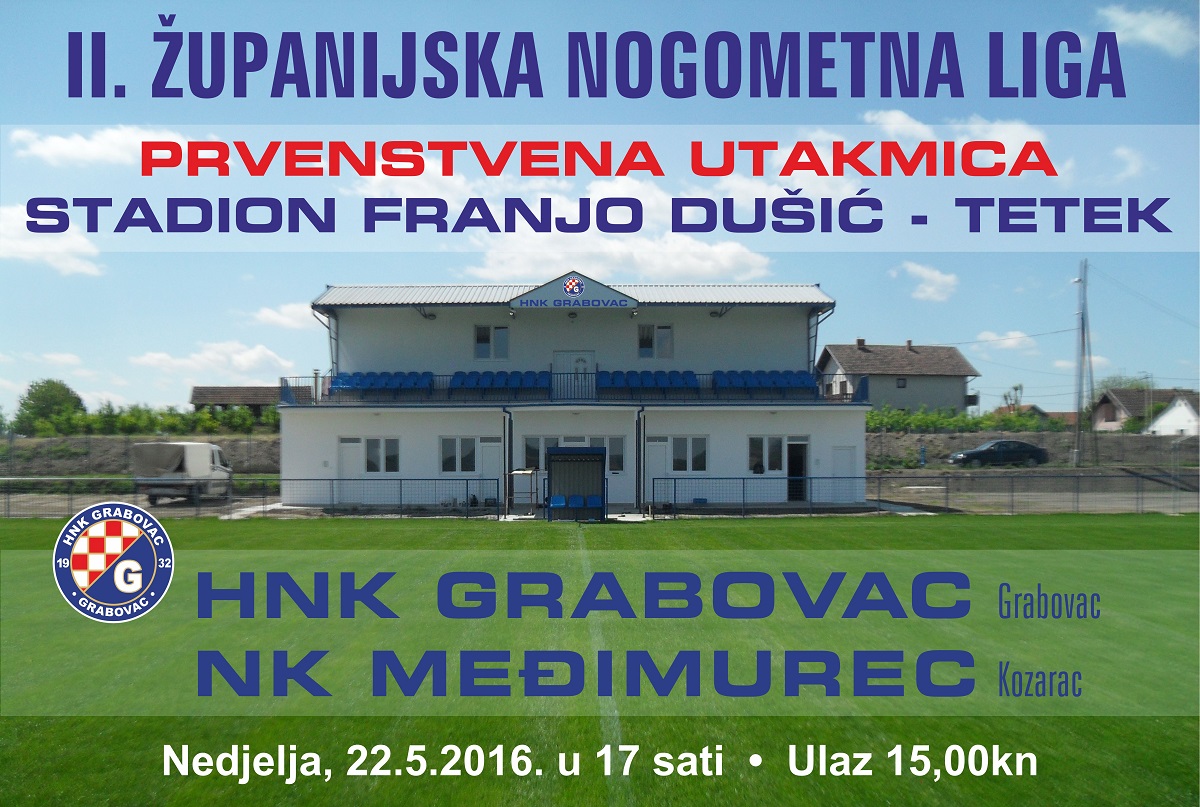 U nedjelju, 22. svibnja 2016. u 17 sati u Grabovcu odigrati će se prvenstvena utakmica II. županijske nogometne lige između HNK "Grabovac" i NK "Međimurec".