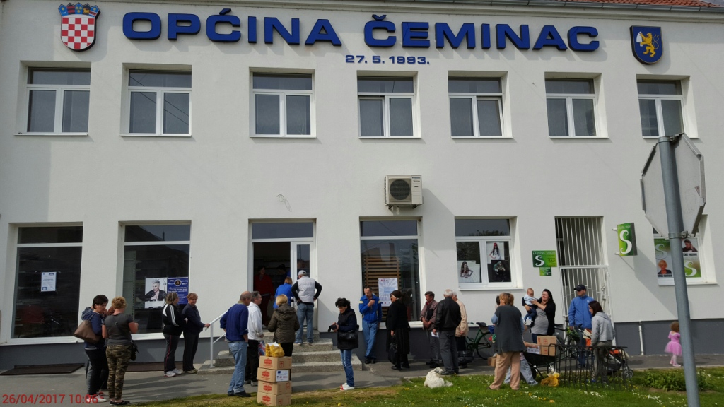 u sklopu projekta "Humanitarni paket za Slavoniju 1", čiji je nositelj Crveni križ, Općina Čeminac je za naše najpotrebitije sumještane osigurala pakete hrane i higijenskih potrepština. Danas, 26. travnja 2017. godine, podijeljeno je ukupno 90 humanitarnih paketa podijeljenih u tri dobne kategorije: paket za odraslu osobu, dijete od 0. - 4. godine te dijete od 5. do 14. godine života.