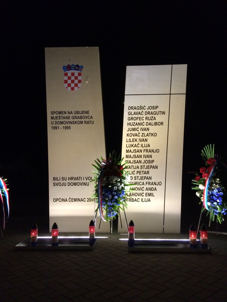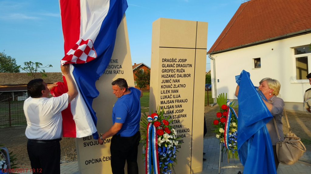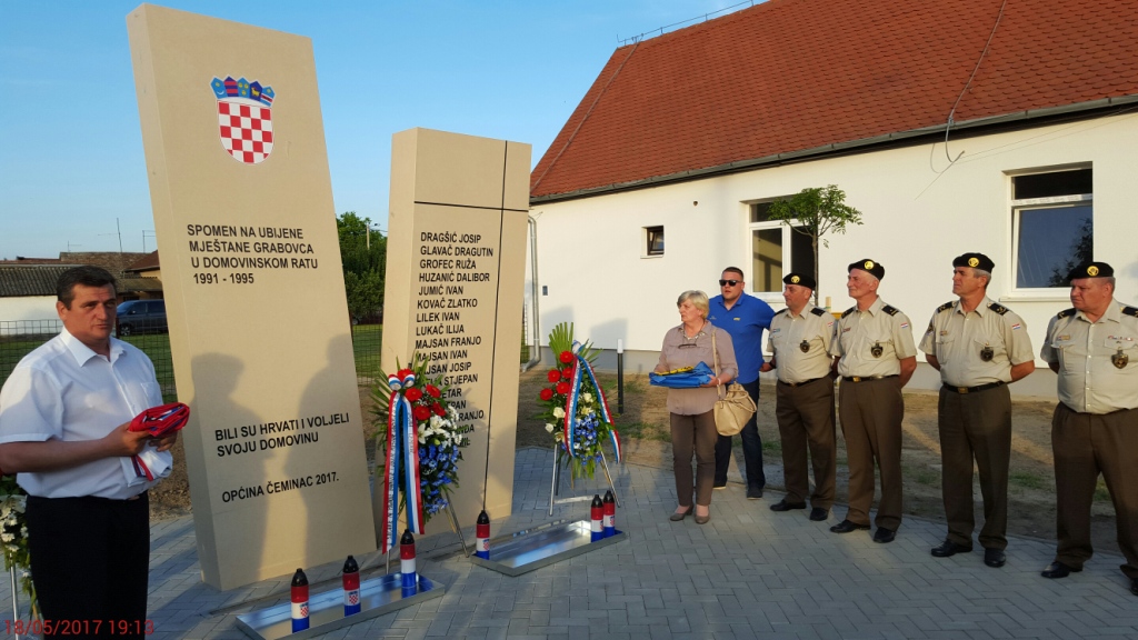 izuzetna mi je čast izvijestiti Vas kako je 18. svibnja 2017. godine svečano otkriveno spomen obilježje svim poginulim braniteljima i ubijenim mještanima Grabovca u Domovinskom ratu. Ovom važnom događaju, prisustvovali su zamjenica načelnika, Anuša Rešetar, dipl.oec., predsjednik Općinskog vijeća Općine Čeminac, Mario Kralj, vijećnici Općinskog vijeća Općine Čeminac, obitelji poginulih branitelja i ubijenih mještana Grabovca te članovi Udruge veterana vojne policije Osječko - baranjske županije.