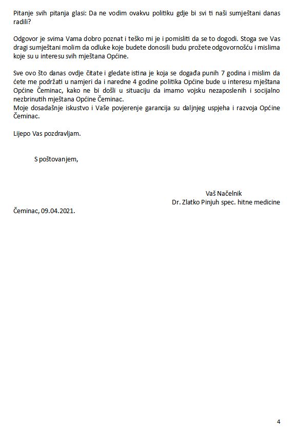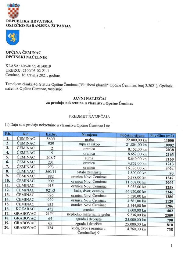 Obavještavamo Vas da će Općinsko izborno povjerenstvo Općine Čeminac dežurati u prostorijama Općine Čeminac: