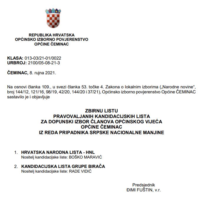 te zbirna lista pravovaljanih kandidacijskih lista KLASA: 013-03/21-01/022, URUDŽBENI BROJ:2100/05-08-21-3