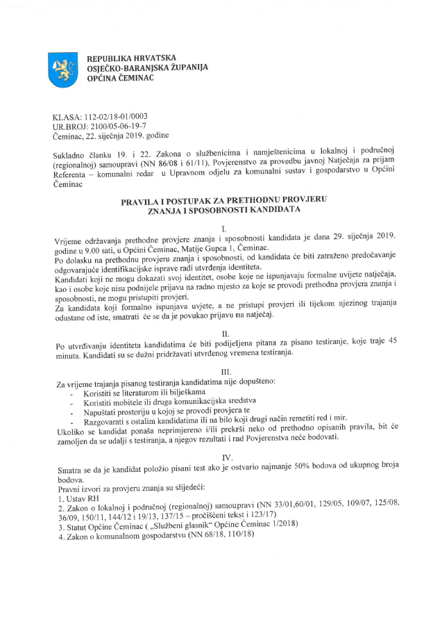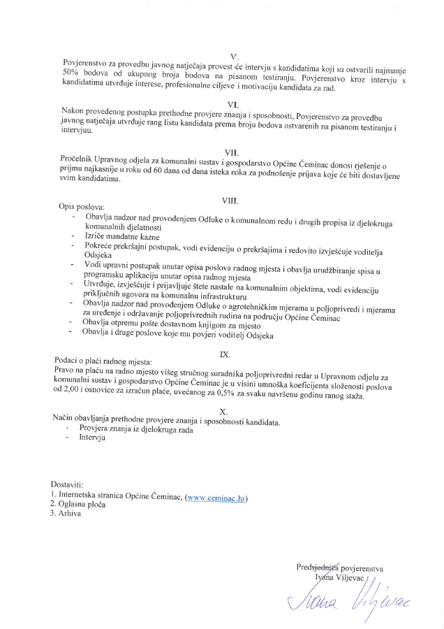 IV. Rezultati izbora bit će objavljeni na oglasnoj i na internetskim stranicama Općine Čeminac – www.ceminac.hr.